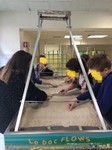 Le laboratoire de Géologie de la faculté de sciences de Grandmont nous a prêté un « Bac flow ». - Il s’agit d’un bac sur pieds inclinable de 1m de large sur 2m de long rempli de sable.